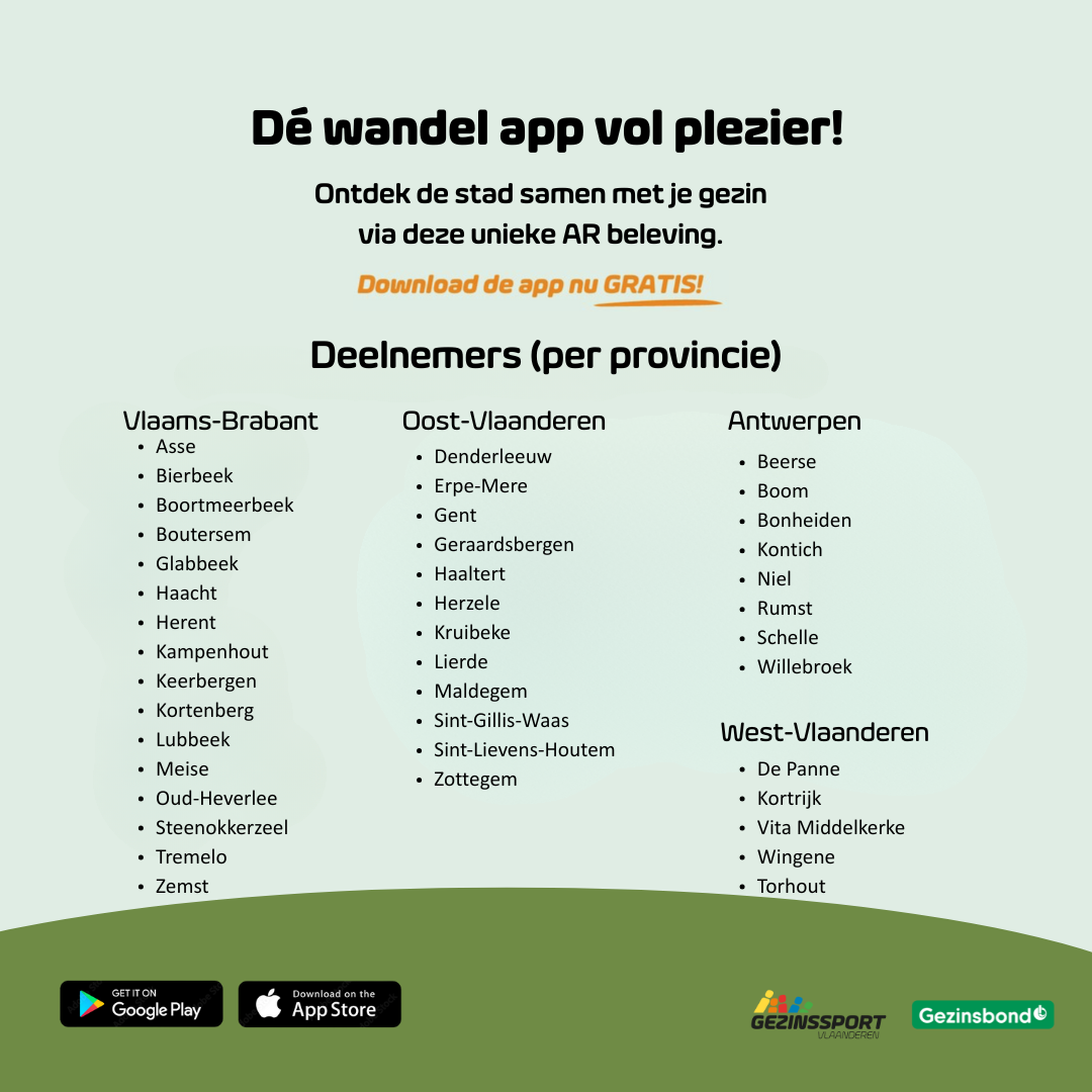 - Geen wandeling in je buurt? Overtuig je stad of gemeente om de app aan te kopen!